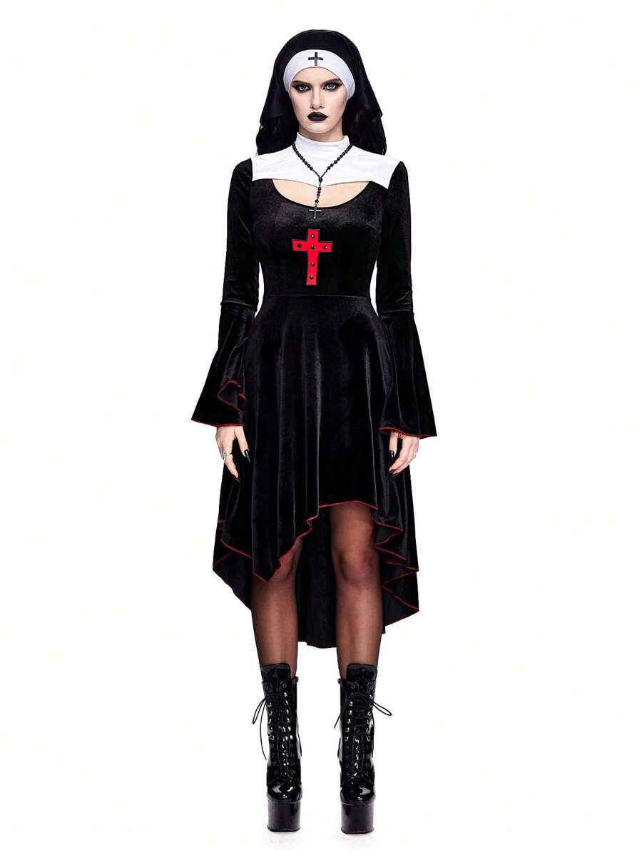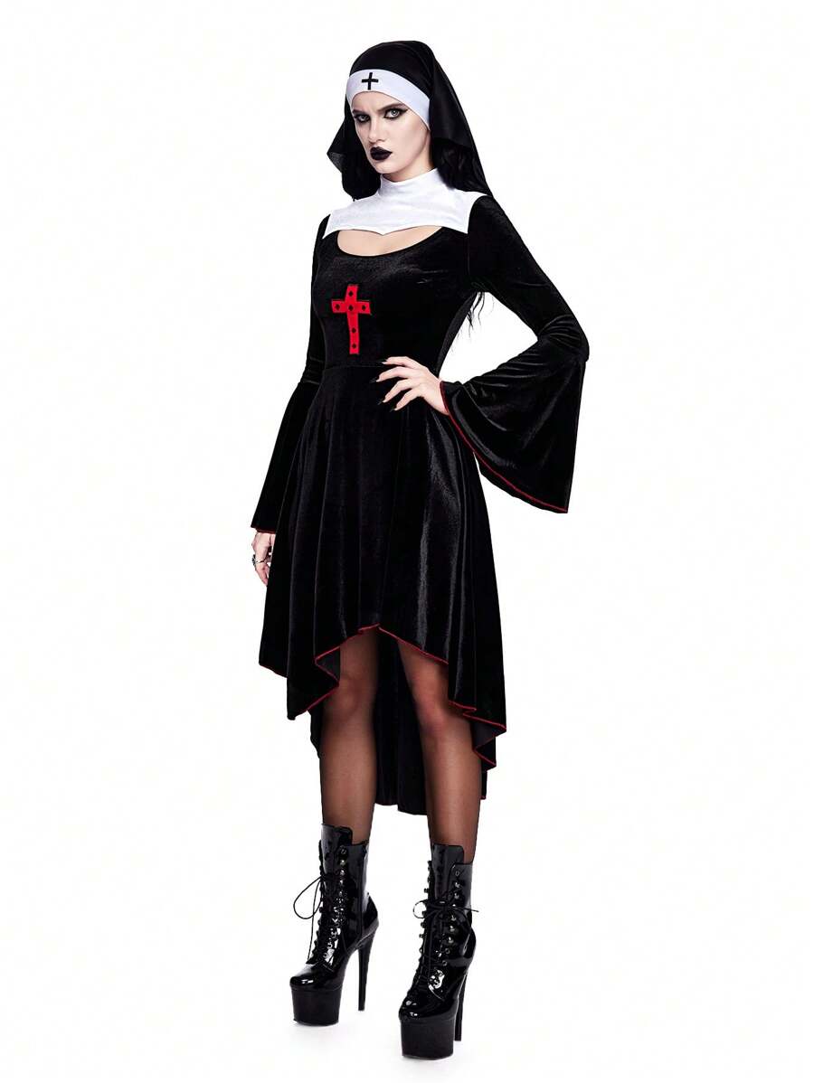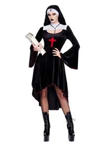 ROMWE Avant Vestido de disfraz de estilo gótico con bajo asimétrico de terciopelo para cosplay y Halloween