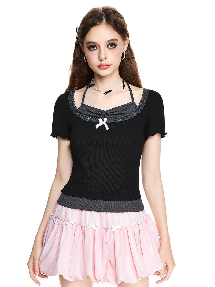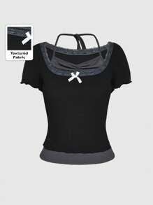 ROMWE Avant Camiseta de mujer casual de estilo universitario gris 2 en 1
