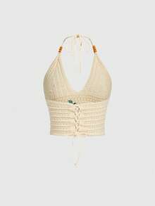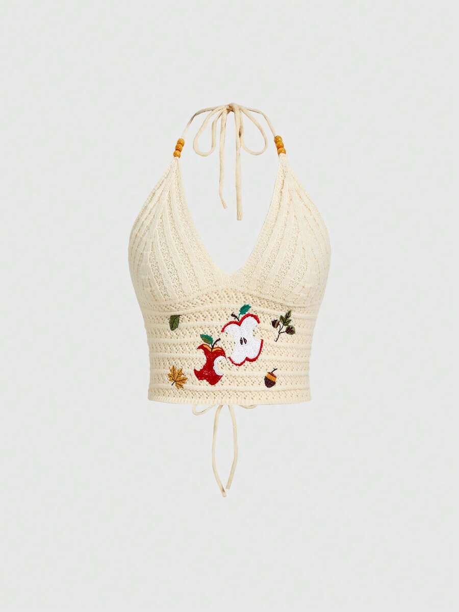 ROMWE Avant Blusa de punto con bordado de manzana, estilo dulce y casual para vacaciones en la isla