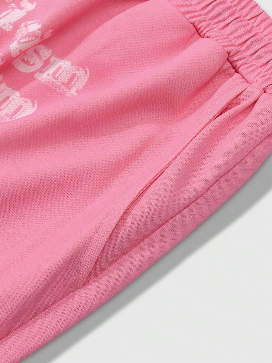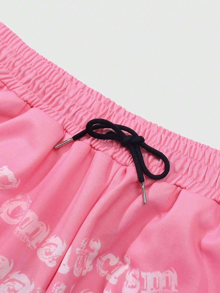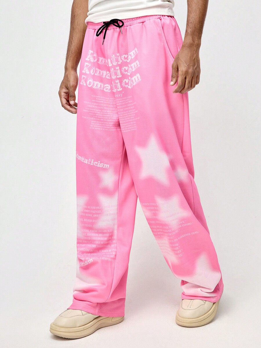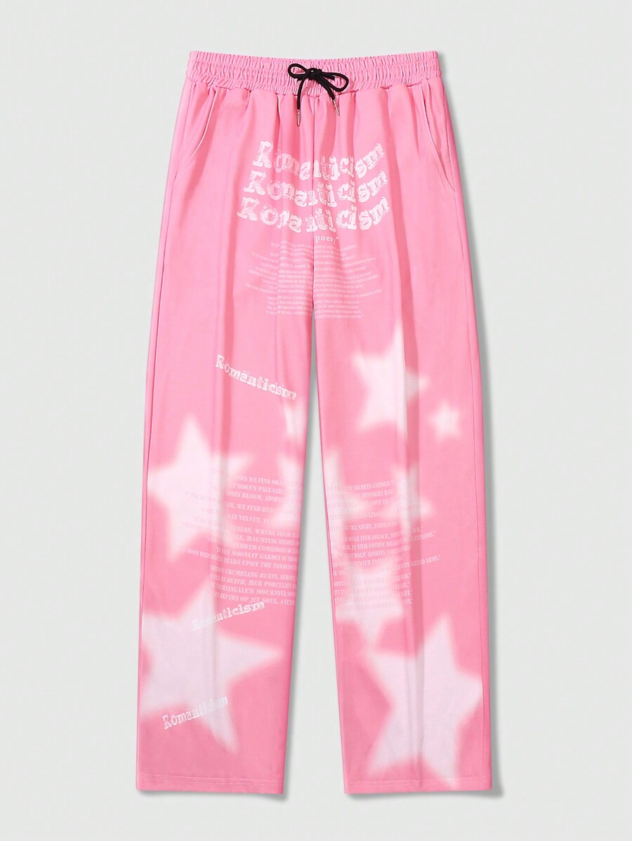ROMWE Avant Pantalones deportivos con cordón en la cintura, estampado de estrellas y eslóganes, para escuela