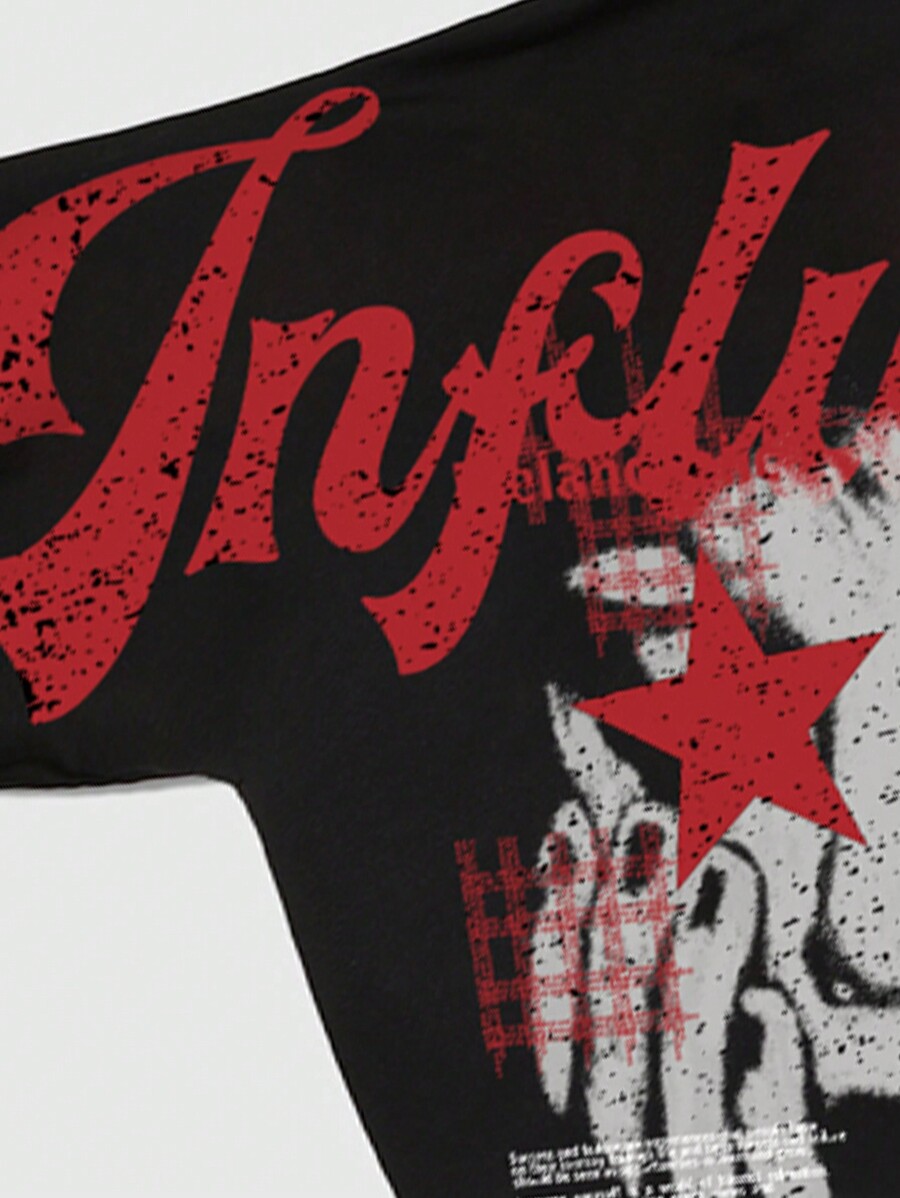 ROMWE Avant Sudadera con estampado de retrato abstracto para hombre, estilo vintage de ropa urbana