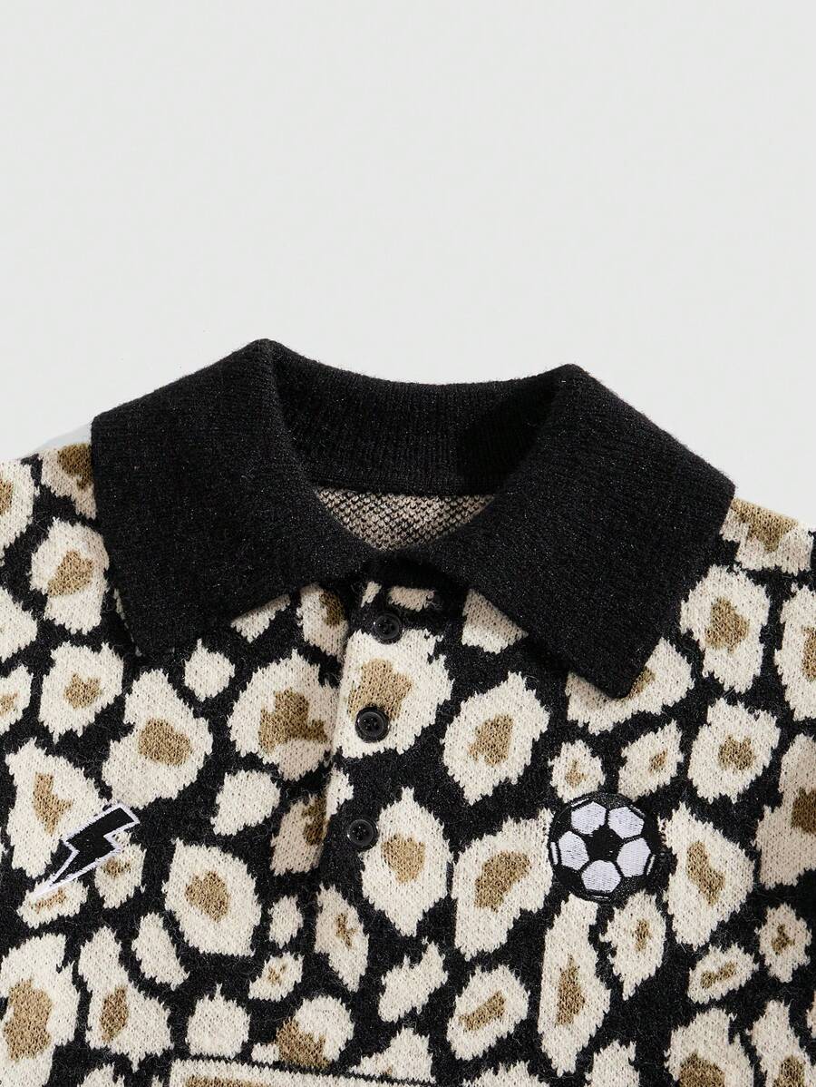 ROMWE Avant Jersey de manga larga con estampado de leopardo y patrón de números, informal para hombre, otoño/invierno