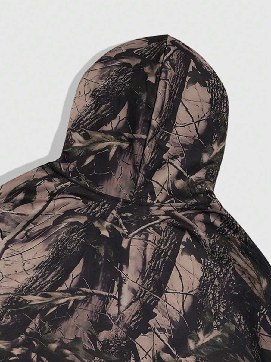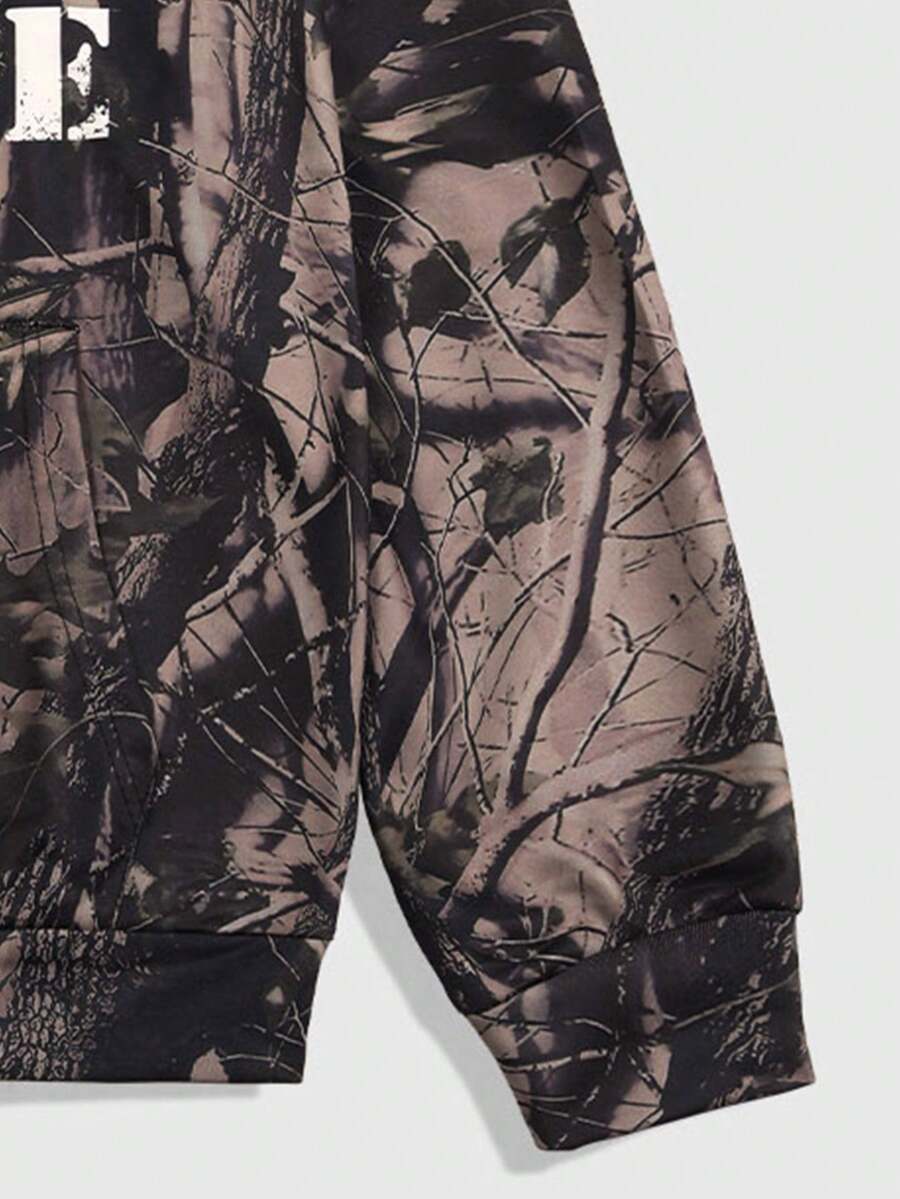 ROMWE Avant Sudadera con capucha casual de hombre con estampado de rama de árbol y letra, para primavera y otoño