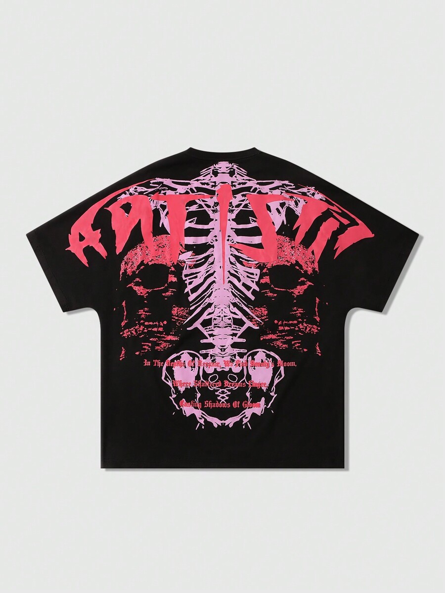 ROMWE Avant Camiseta con estampado de calavera de moda para hombres, estilo veraniego de los años 2000