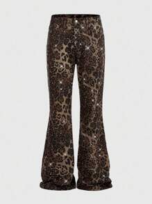ROMWE Avant Jeans con estampado de Leopardo en capas de diamantes brillantes para hombre