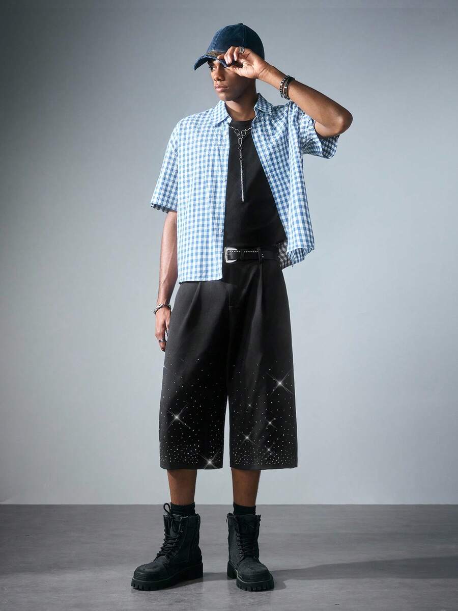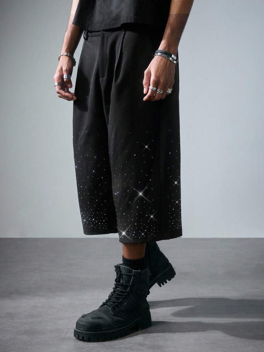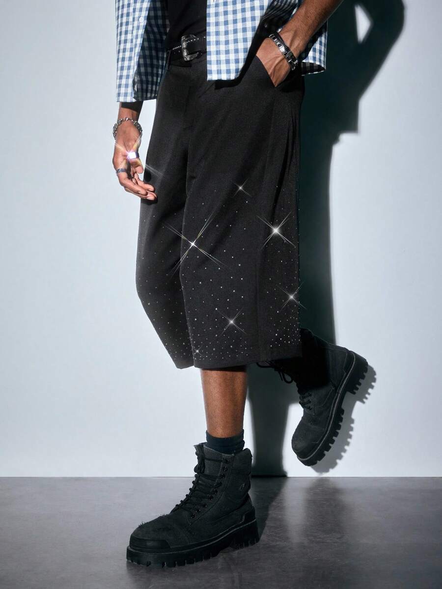 ROMWE Avant Pantalones capri para hombres con aplicaciones de rhinestone, adecuados para primavera y verano
