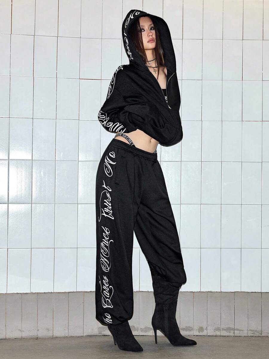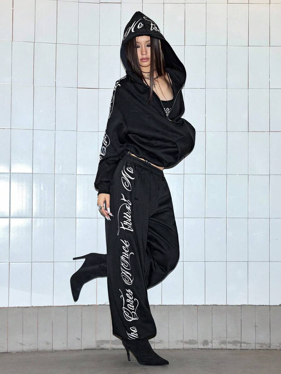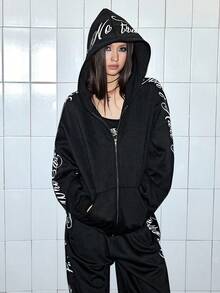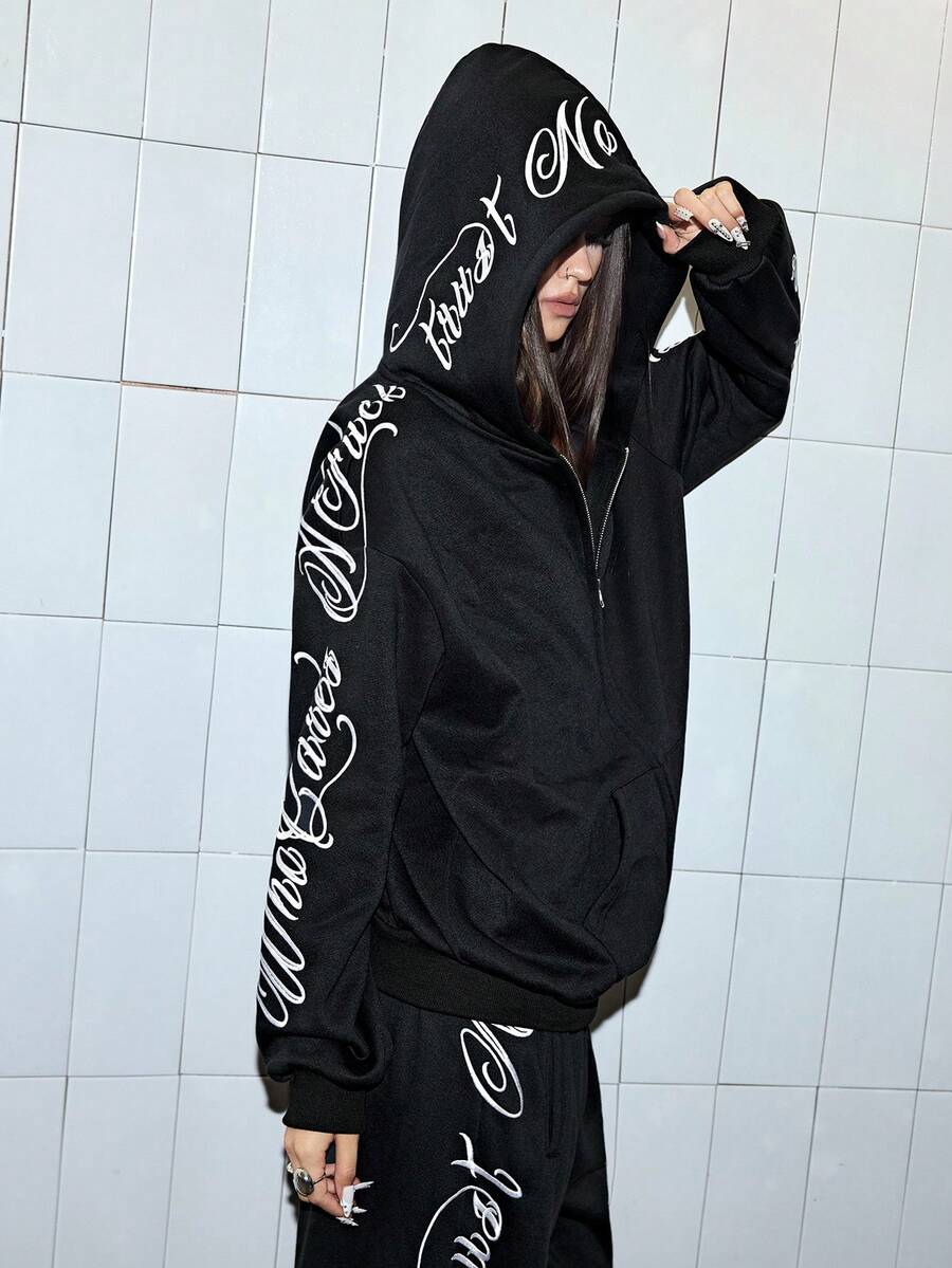 ROMWE Avant Sudadera oversize con bordado gráfico
