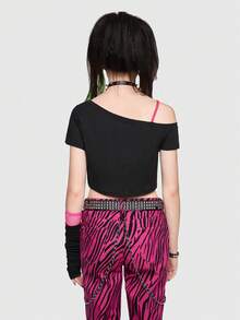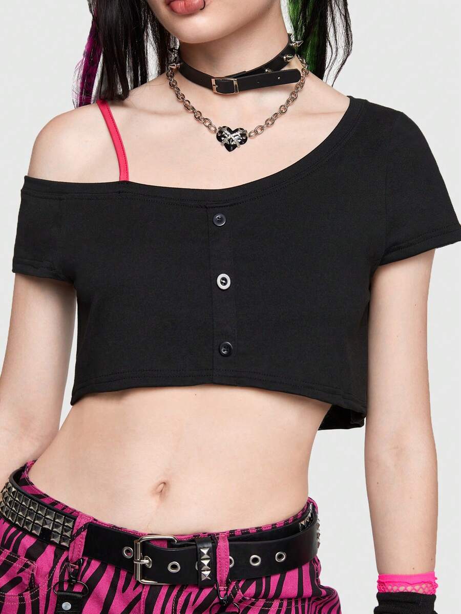 ROMWE Avant Camiseta crop unicolor de cuello asimétrico