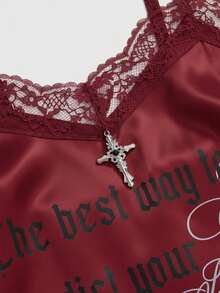 ROMWE Avant Camiseta de satén con estampado de cruz y ángel de Halloween para mujer