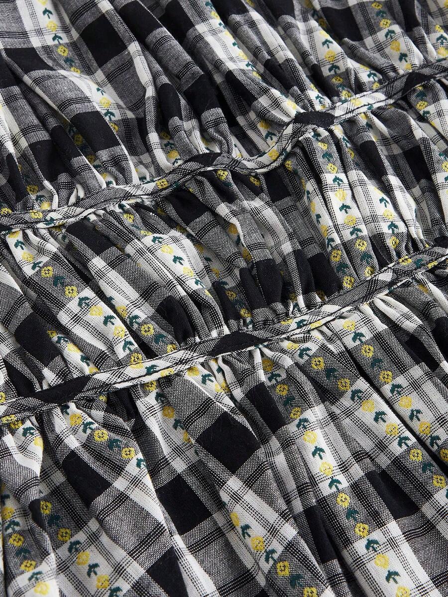 ROMWE Avant Camisola casual de mujer con cuello halter, estampado de cuadros y dobladillo con volantes