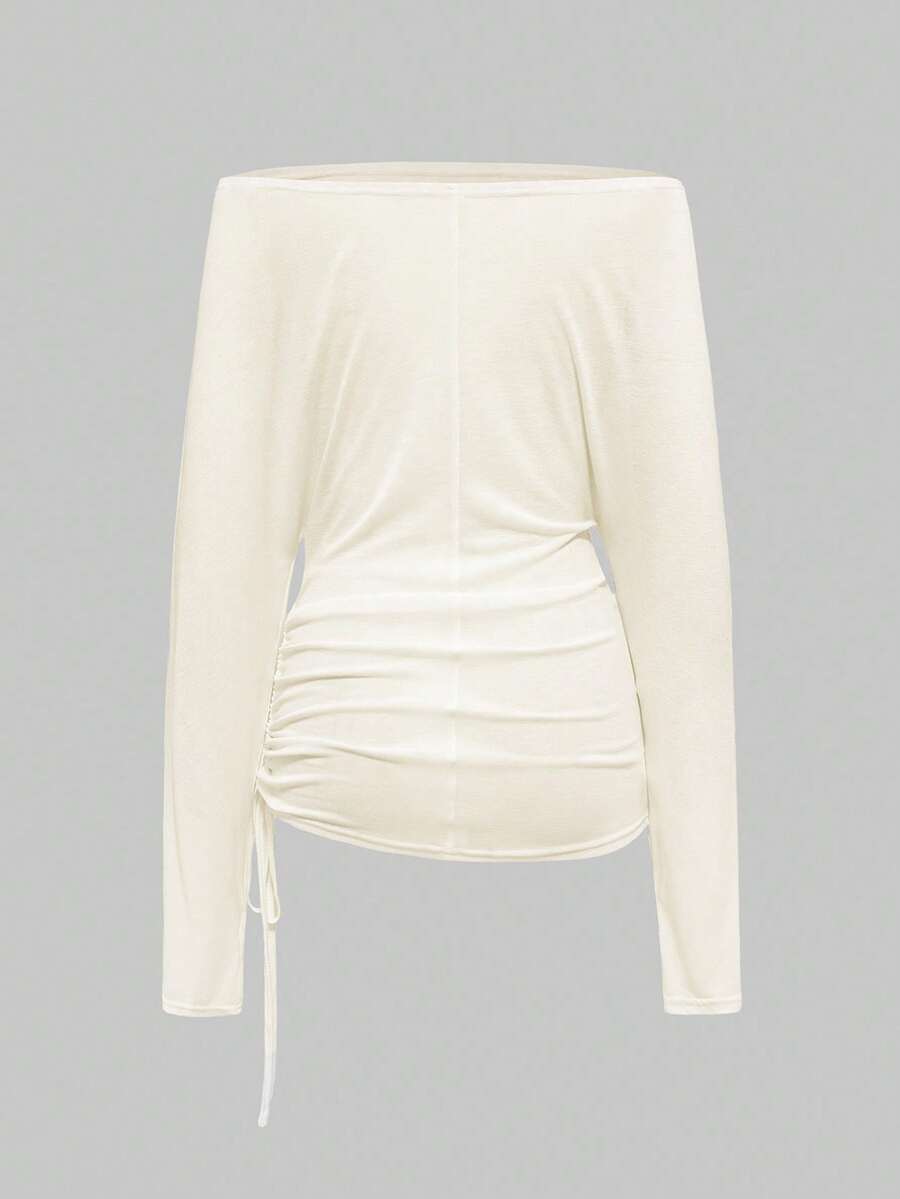 ROMWE Avant Blusa transparente de manga larga con hombros descubiertos, estampado de letra cruzada, estilo retro Y2K, romántico y punk para mujer