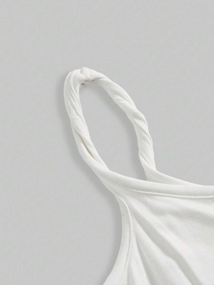 ROMWE Avant Parte superior sin mangas con estampado de bandera nacional y labios de amor con tirantes retorcidos para mujer