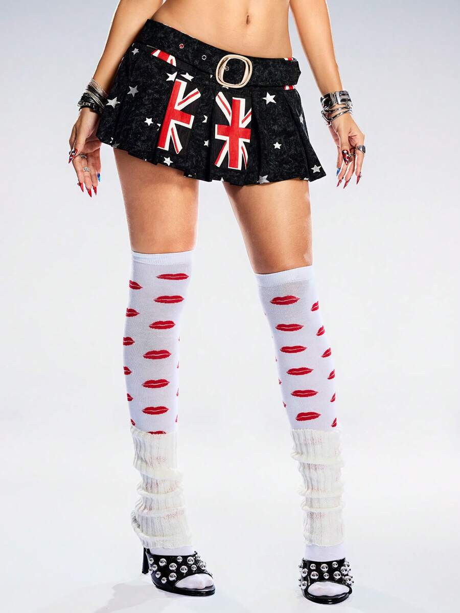 ROMWE Avant Minifalda plisada con estampado de la bandera del Reino Unido para mujer
