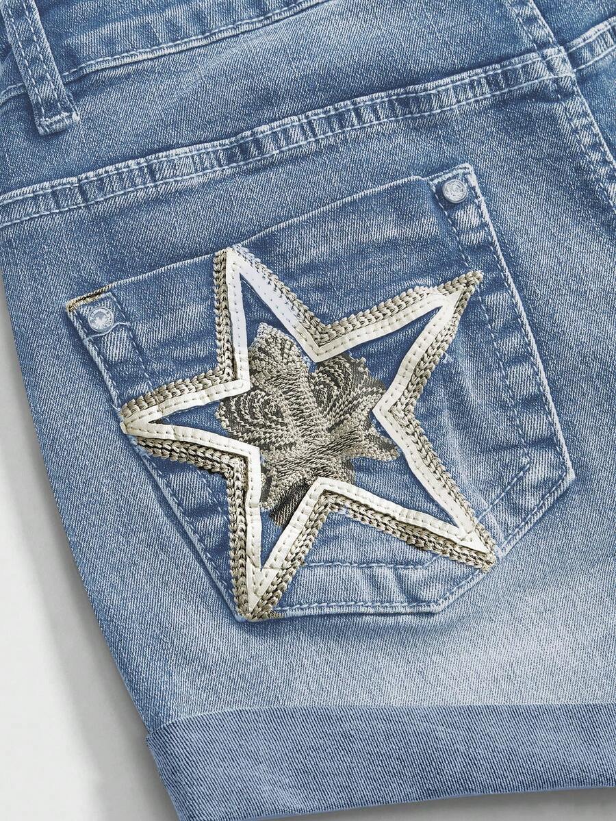 ROMWE Avant Shorts vaqueros con estampado de estrella Y2K para mujer