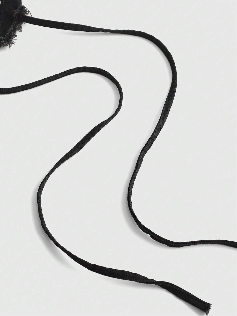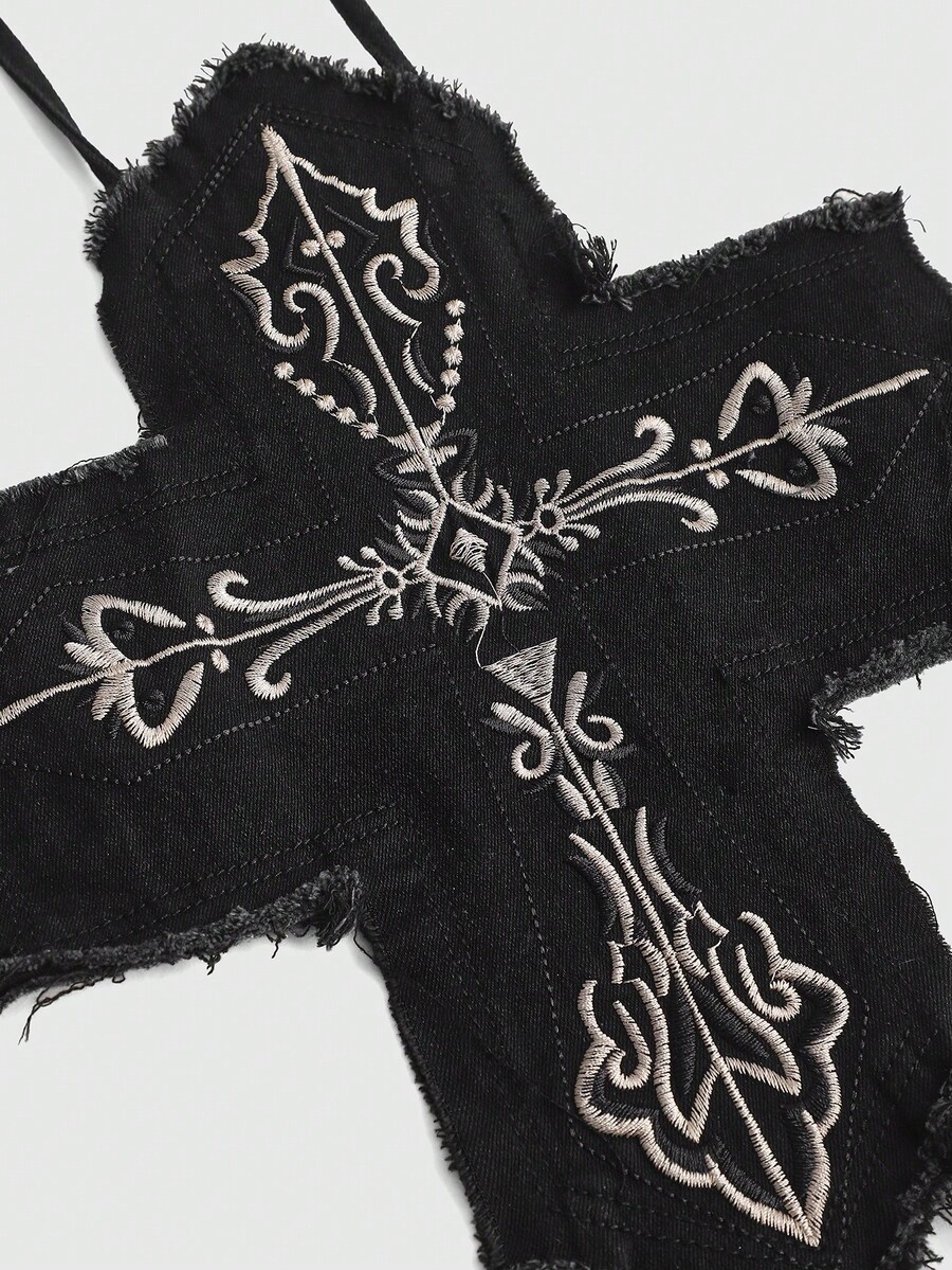 ROMWE Avant Top corto de mezclilla con cuello de halter, cruzado y bordado, con estilo Y2K sexy para mujeres