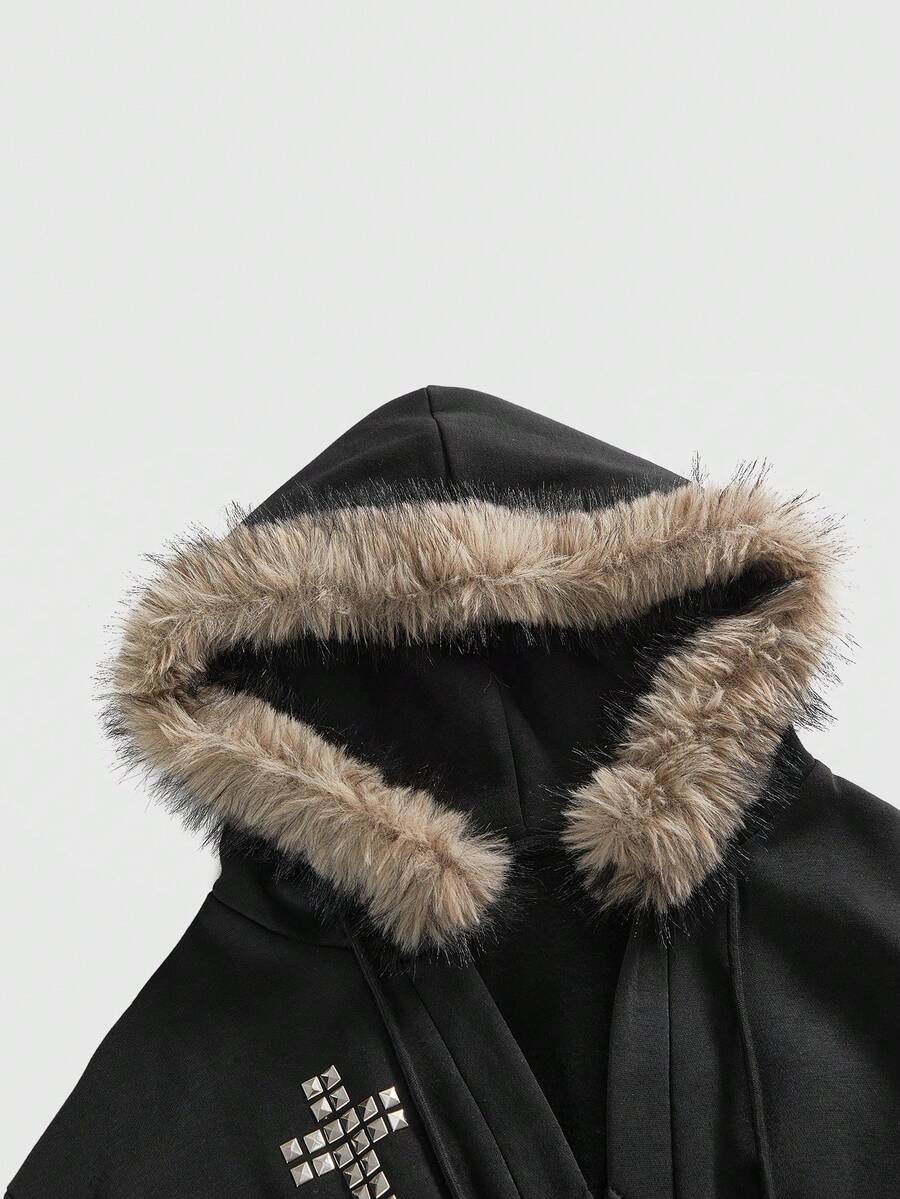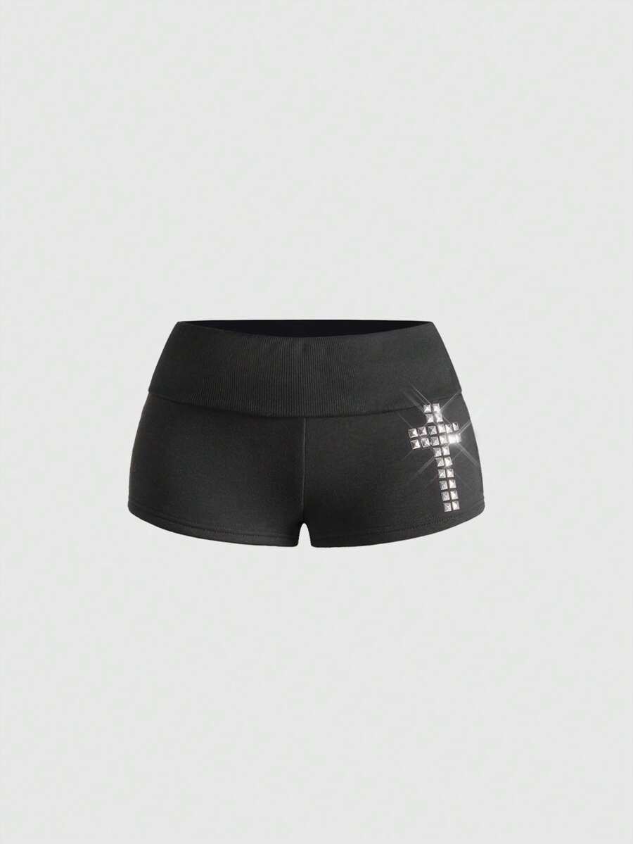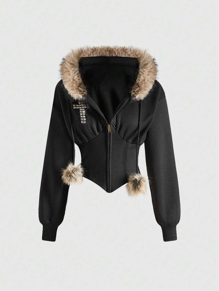ROMWE Avant Conjunto de sudadera con capucha y pantalones de terciopelo con parches de strass estilo Y2K y K-pop para mujer, otoño/invierno