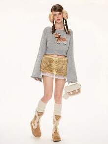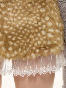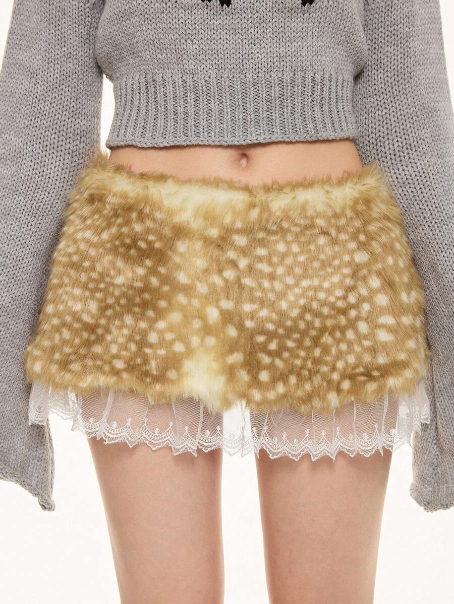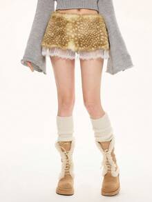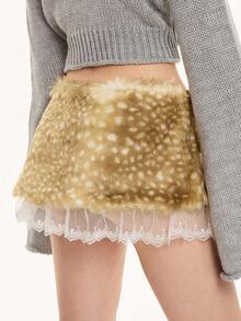 ROMWE Avant Minifalda de cintura baja con estampado de puntos de ciervo, adorno de encaje y esponjosa para mujeres, estilo Y2K