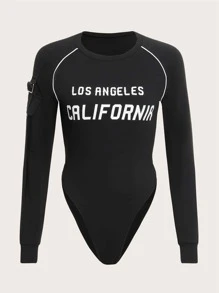 Body con letra con bolsillo con solapa