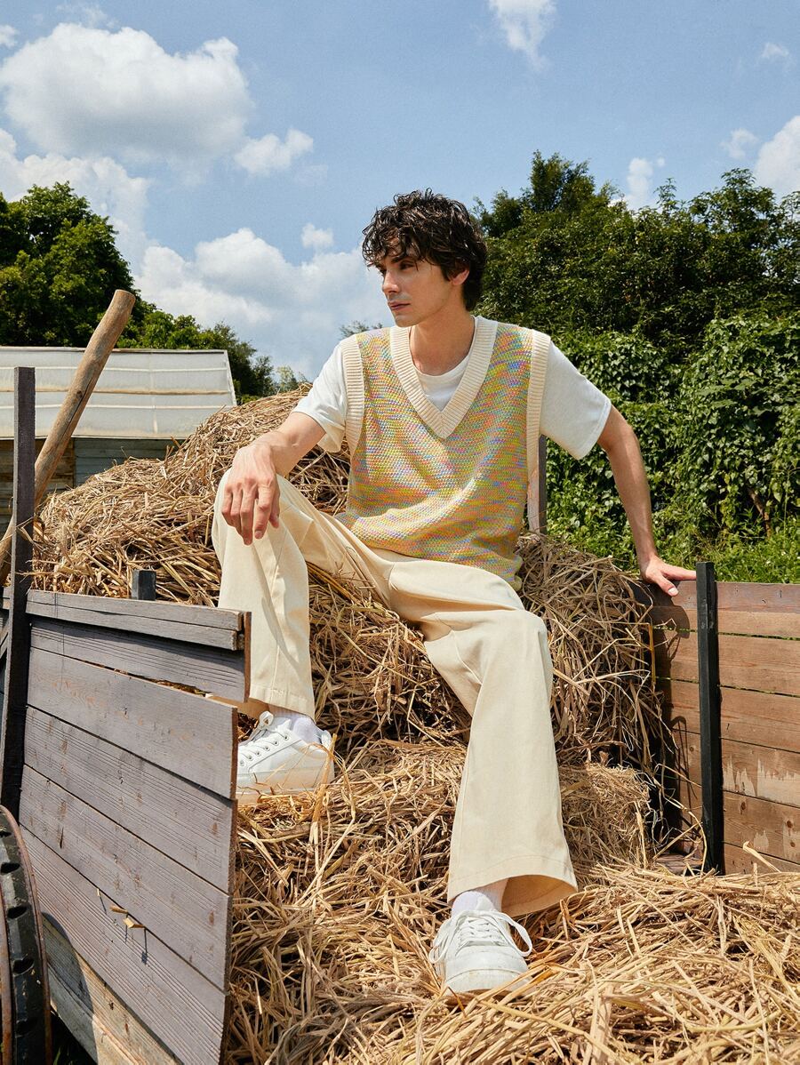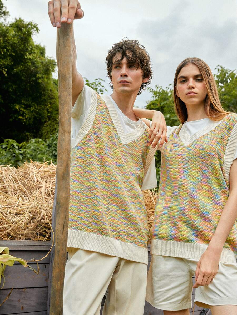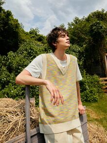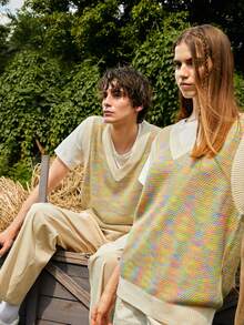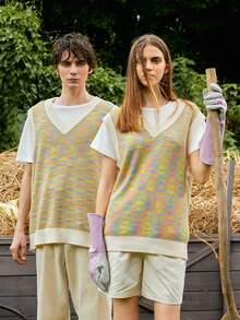 ROMWE UNISEX 1 pieza Chaleco de punto jaspeado unido en contraste
