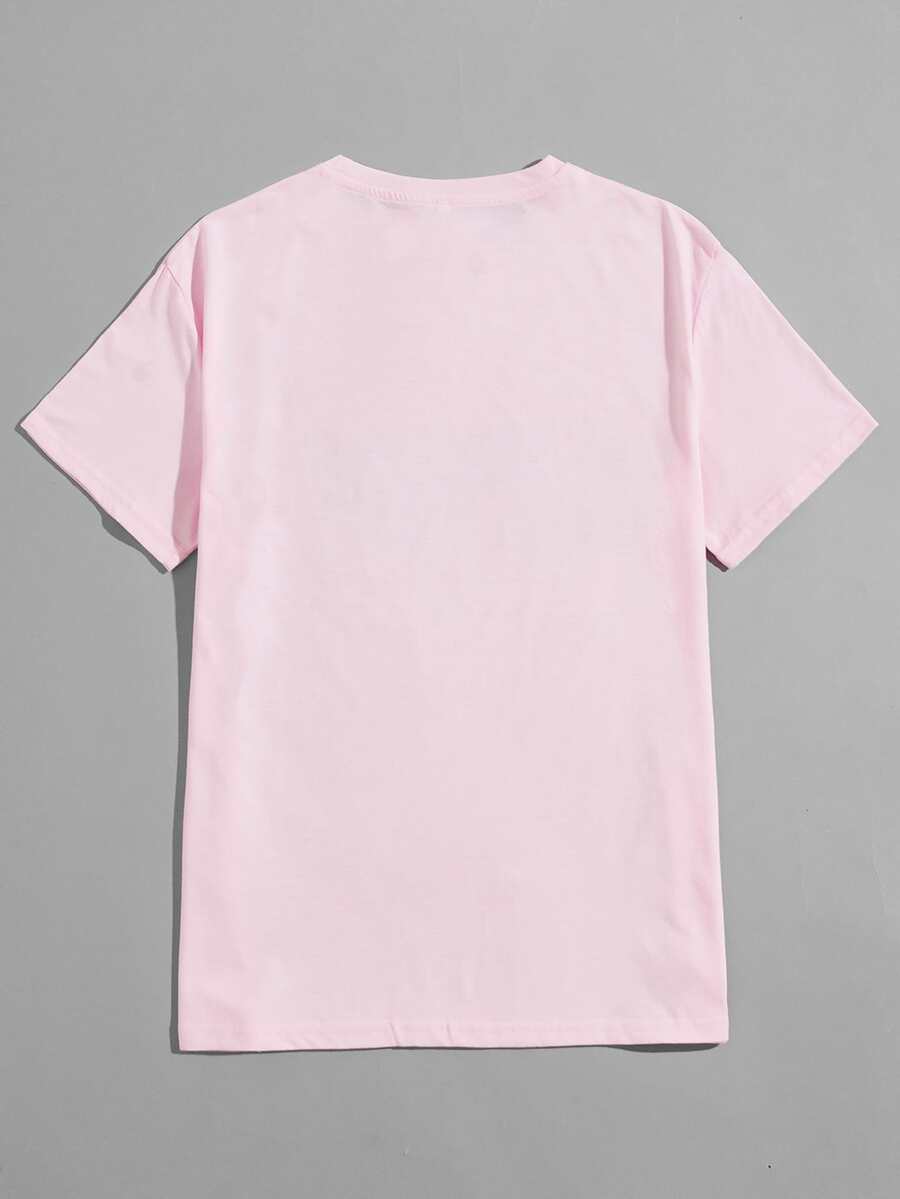 ROMWE UNISEX Hombres Camiseta con letra con estampado de dibujos animados