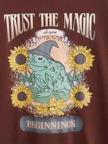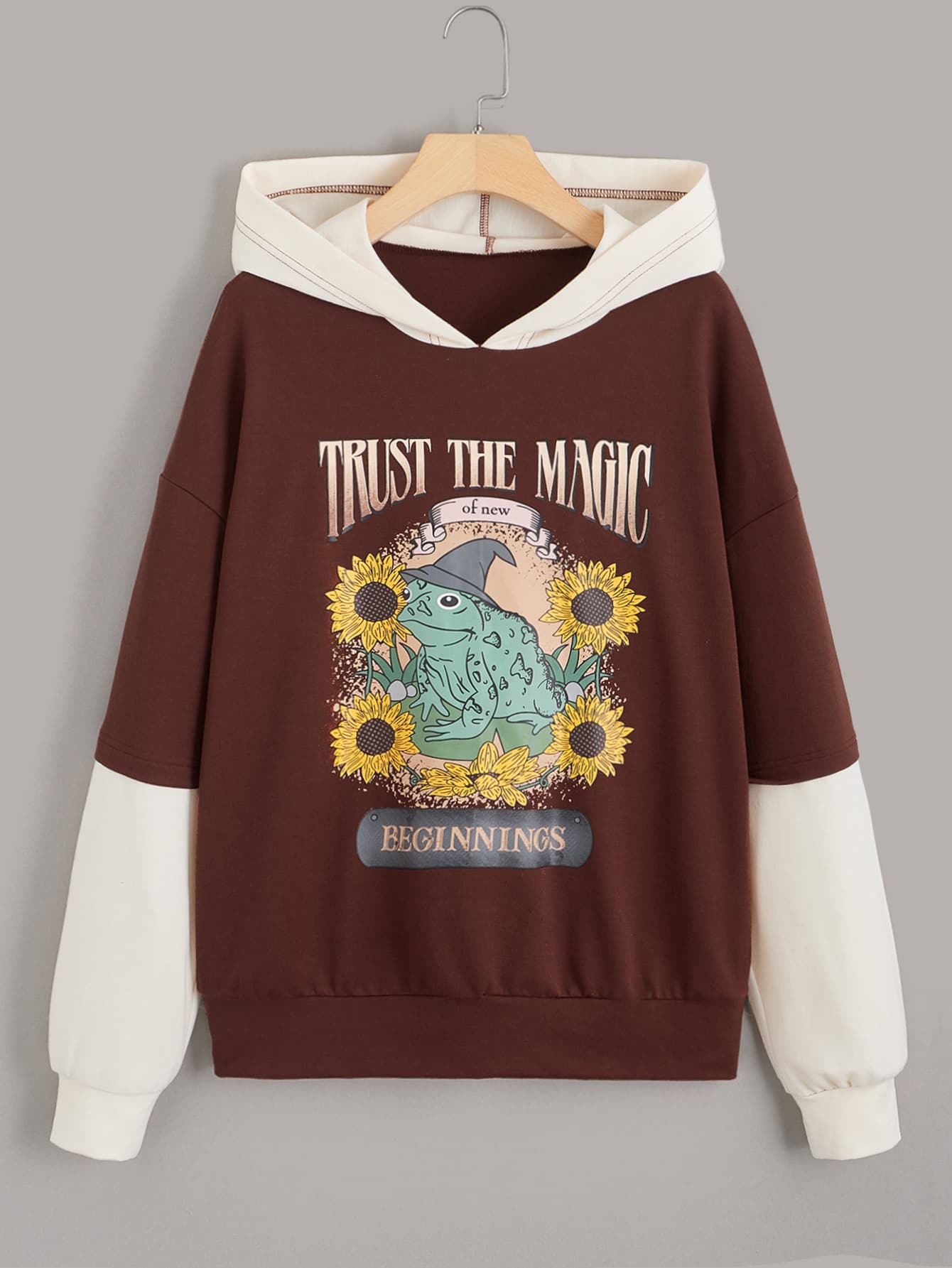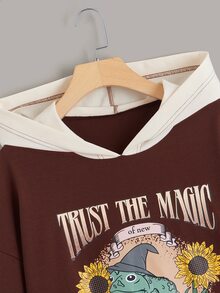Aranza Sanchez Capucha con letra con girasol & con estampado de rana de color combinado
