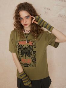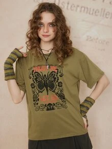 Ashley Baxter Camiseta con mariposa con estampado de letra