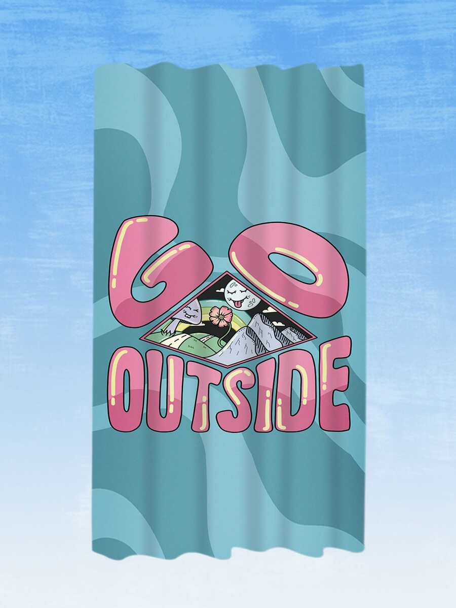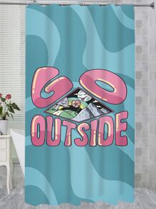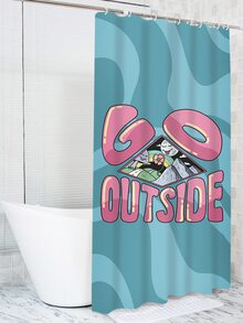 Atosha Cortina de ducha con dibujos animados con estampado de letra y montaña