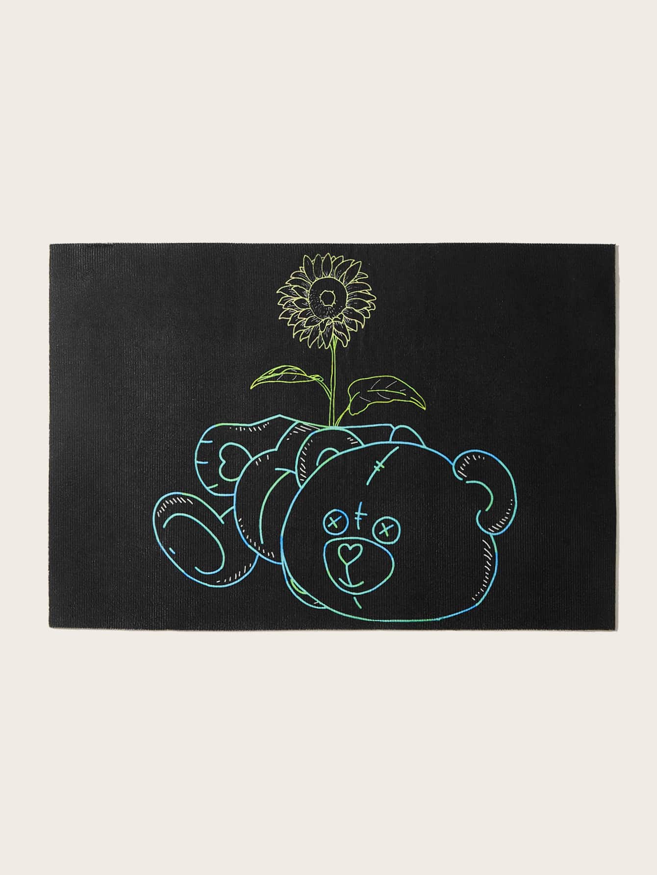 Bunny and Bear 1 pieza Alfombra de piso oso & con estampado de girasol con dibujos animados poliéster para con
