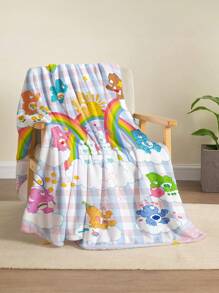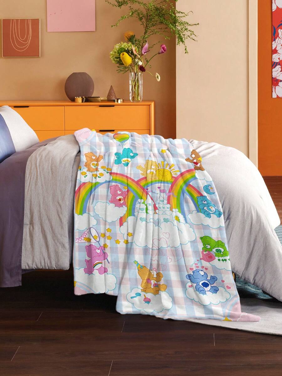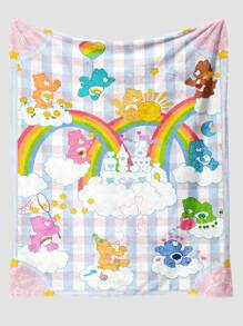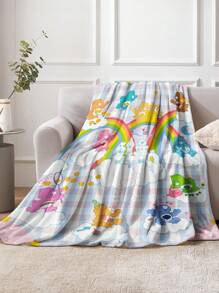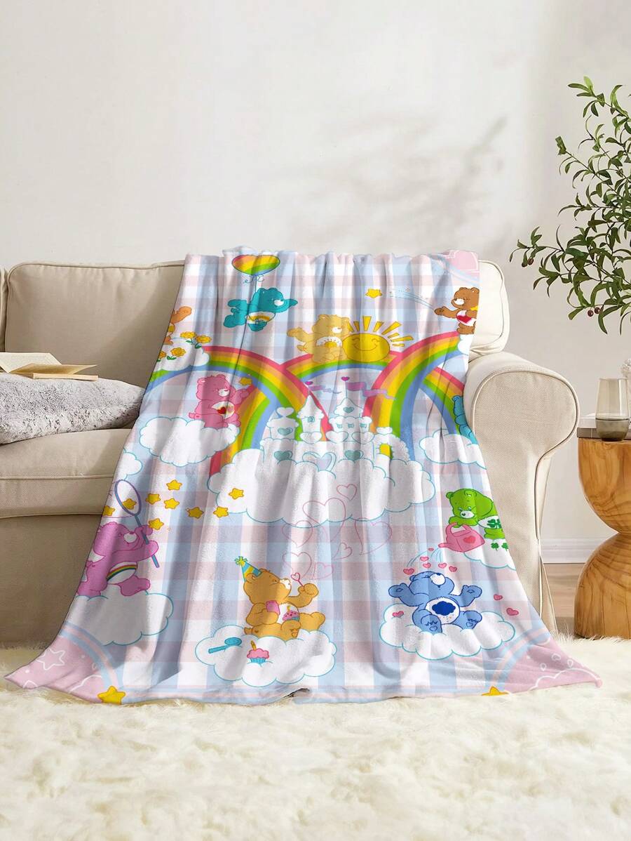 ROMWE X Care Bears 1 pieza Manta de felpa con estampado de osito de peluche de arcoíris de colores, manta suave y cálida para decoración del hogar, sala de estar, sofá, sillón y dormitorio