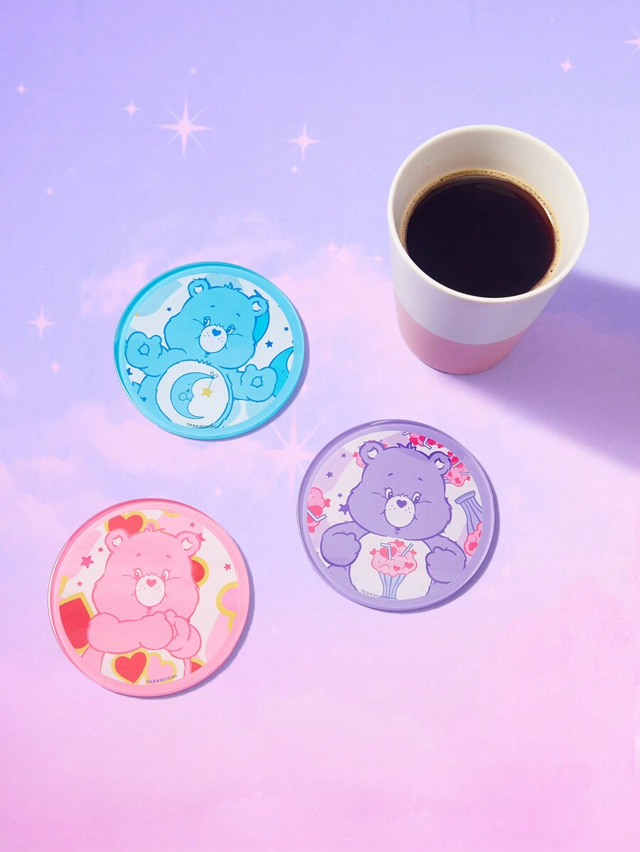 ROMWE X Care Bears 3 piezas con estampado de oso de dibujos animados Portavasos , dulce Posavasos de mesa