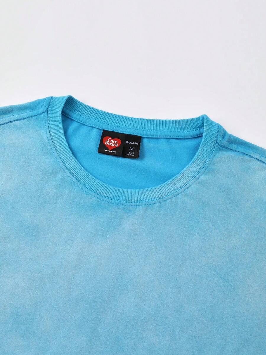 ROMWE X Care Bears Camiseta de manga corta con estampado de estilo vintage lavado para hombres