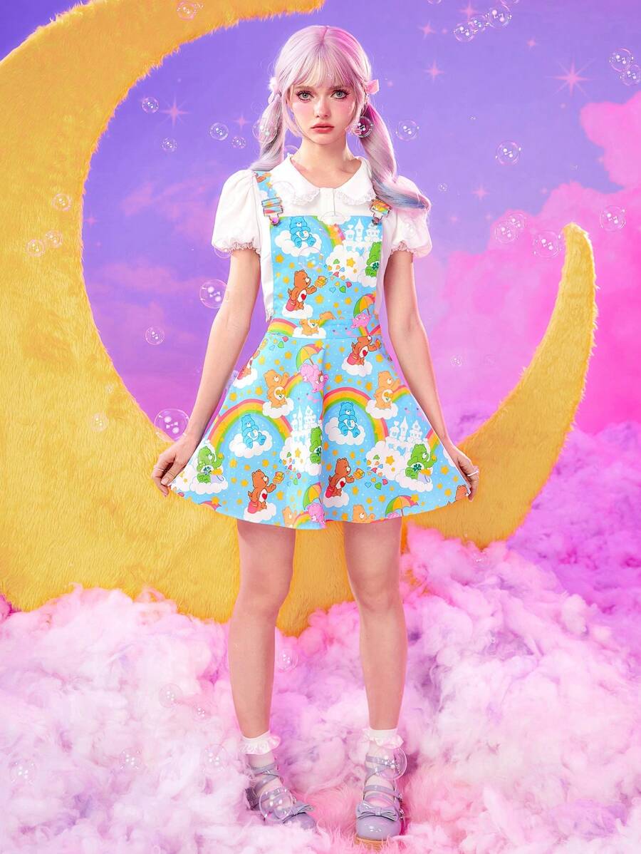 ROMWE X Care Bears Vestido overol de arcoíris & con estampado de oso