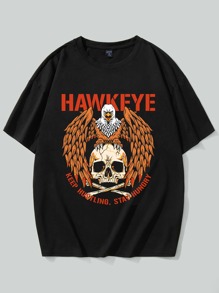 Hombres Camiseta con slogan de cráneo & con águila con estampado