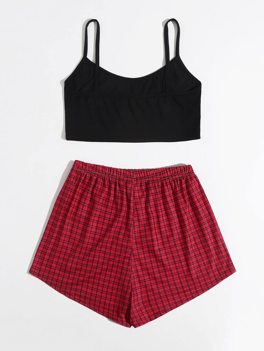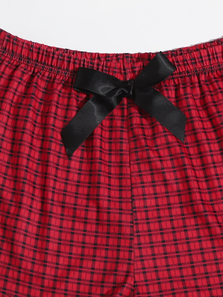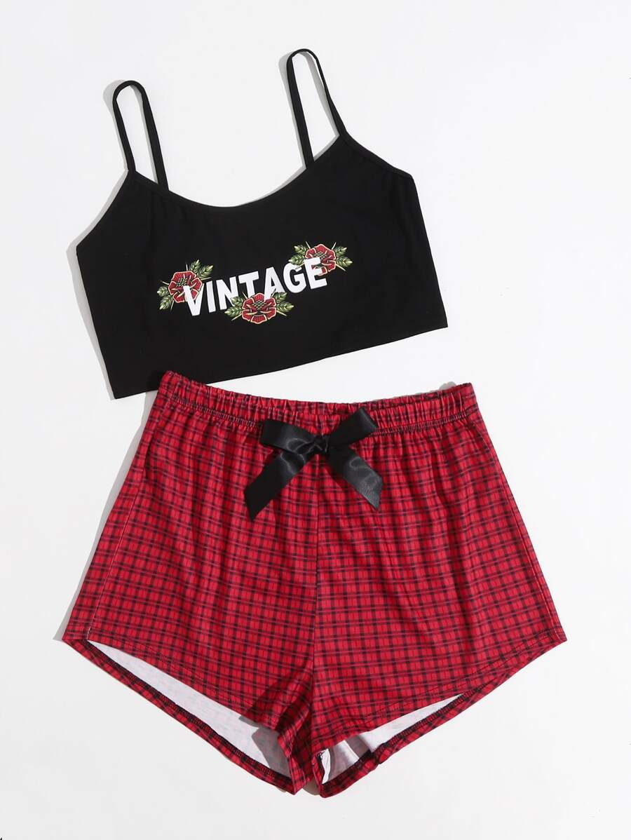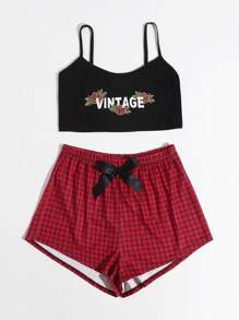 Nyawartdesign Conjunto de pijama con letra floral de cuadros