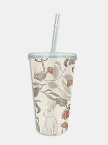 Pati Paints 1 pieza PS Vaso , casual conejo & con patrón floral lavable Botella con tapa