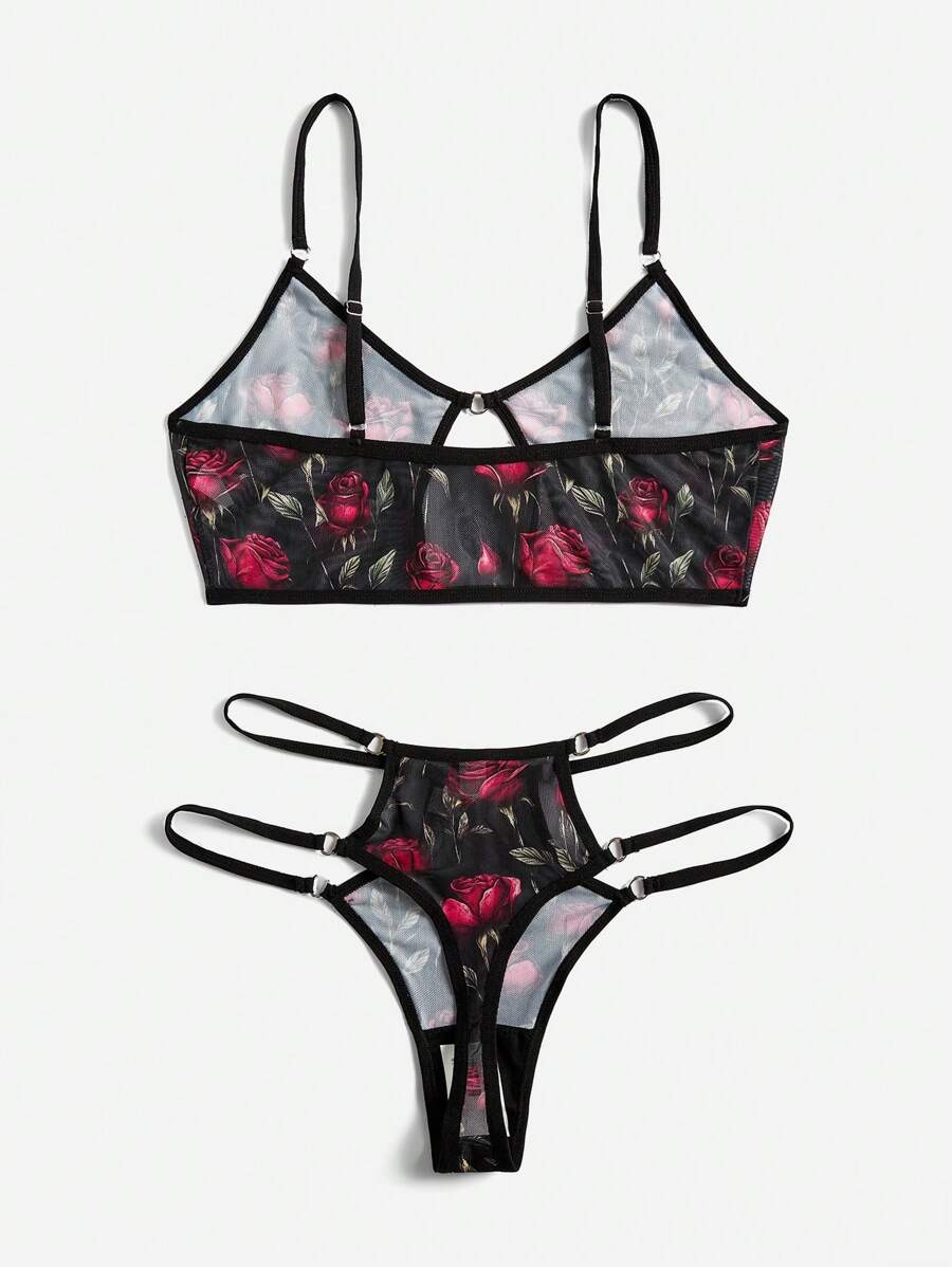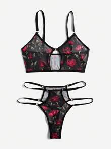 Patishop Art Set de lencería con estampado floral de malla