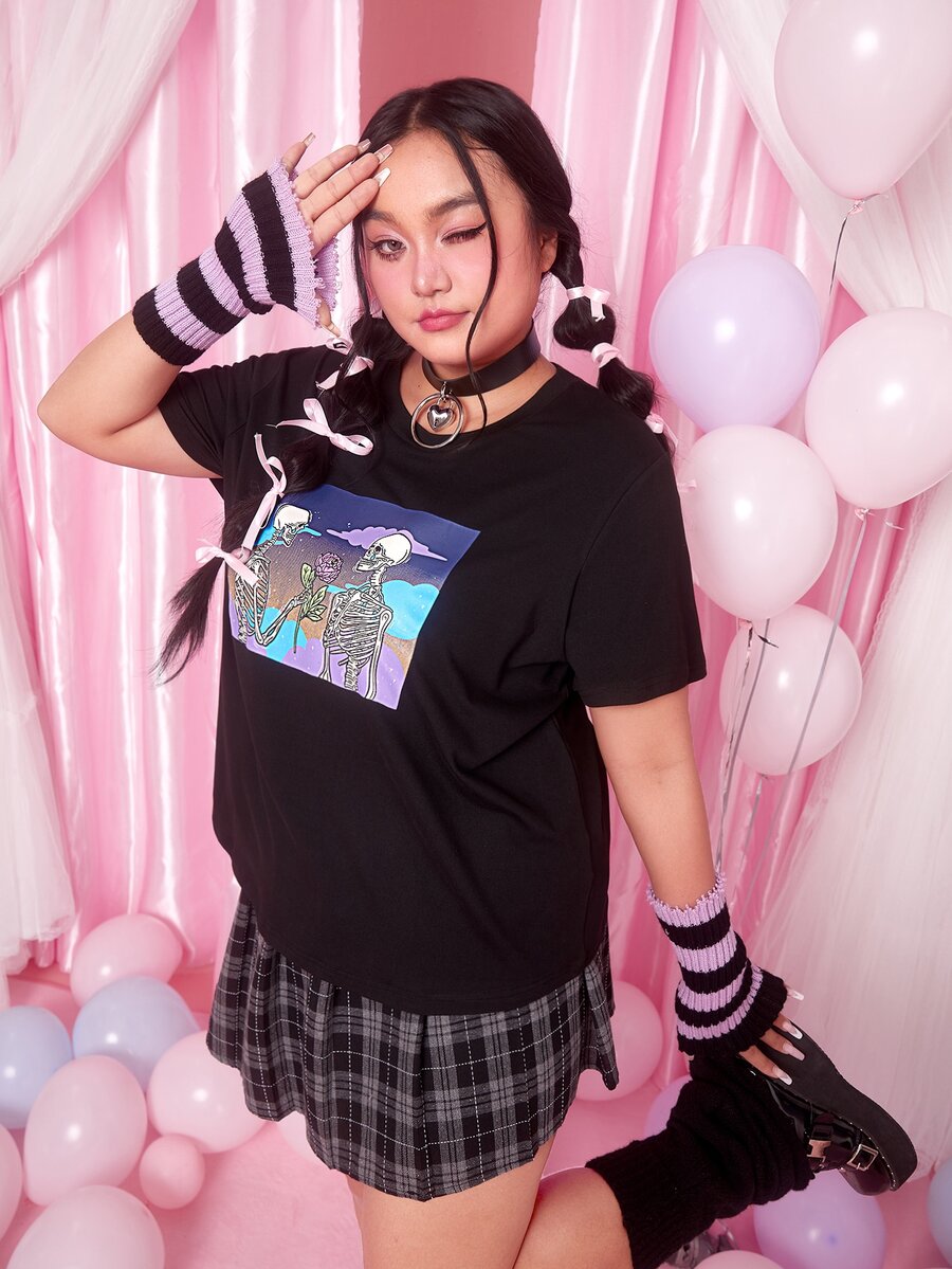 SadSkelly Camisetas de Tallas grandes Halloween Casual