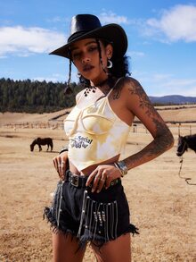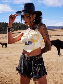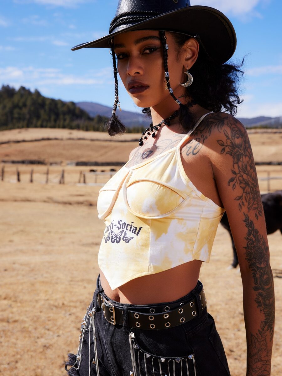 Sun Press Studio Cami corto con letra con estampado de mariposa de tie dye