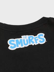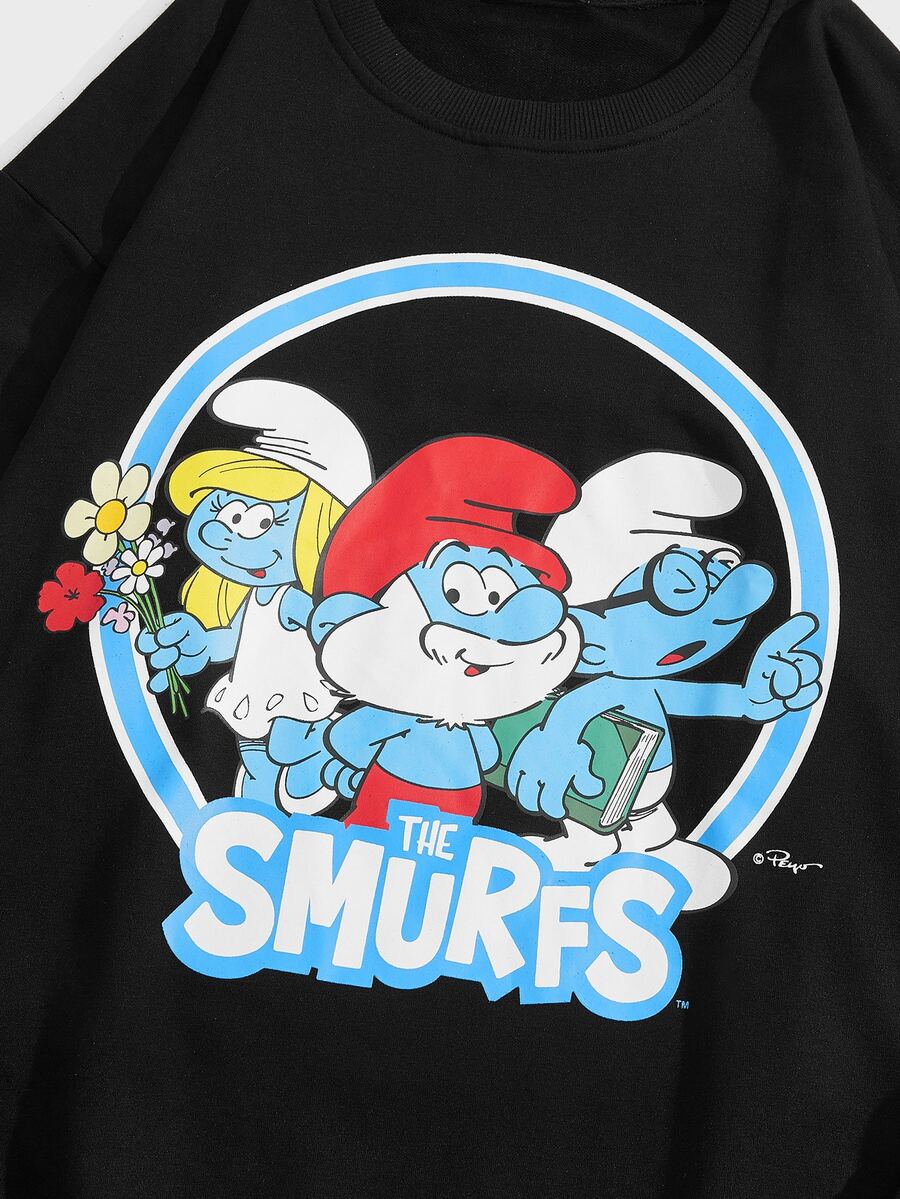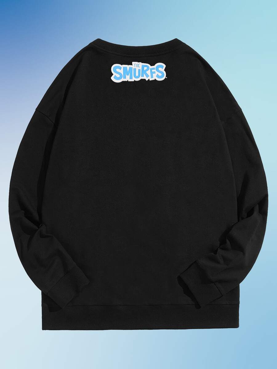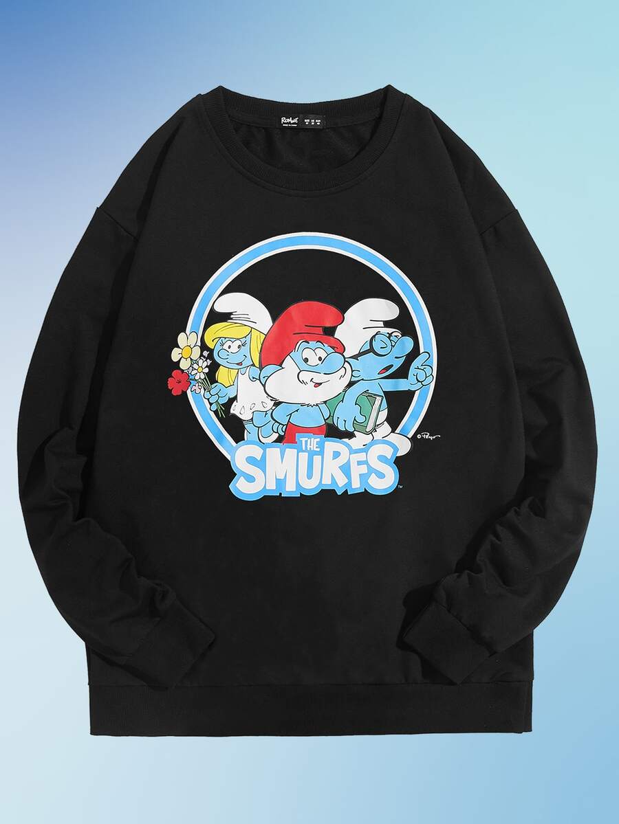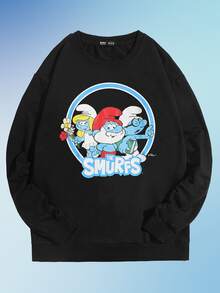 ROMWE X The Smurfs Hombres Sudadera con letra con estampado de dibujos animados