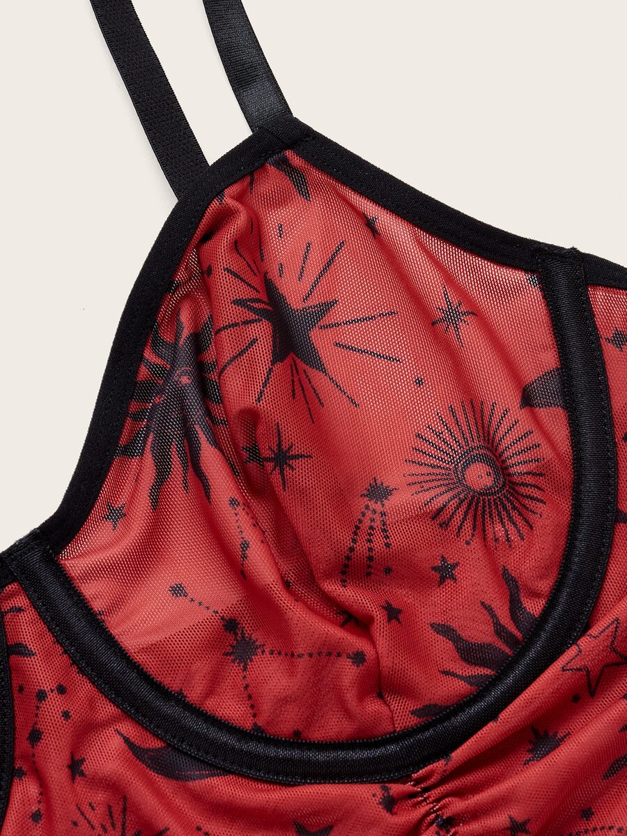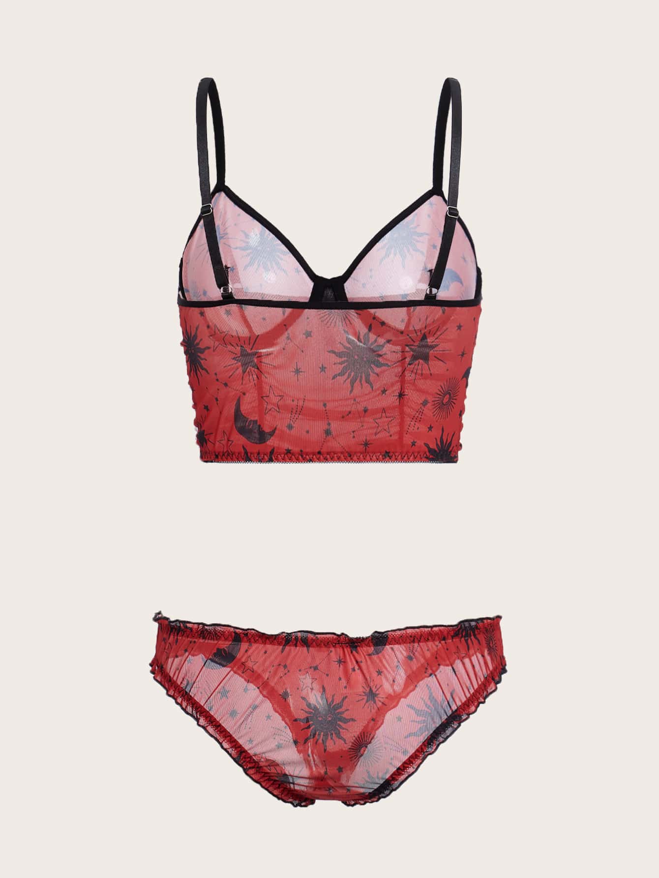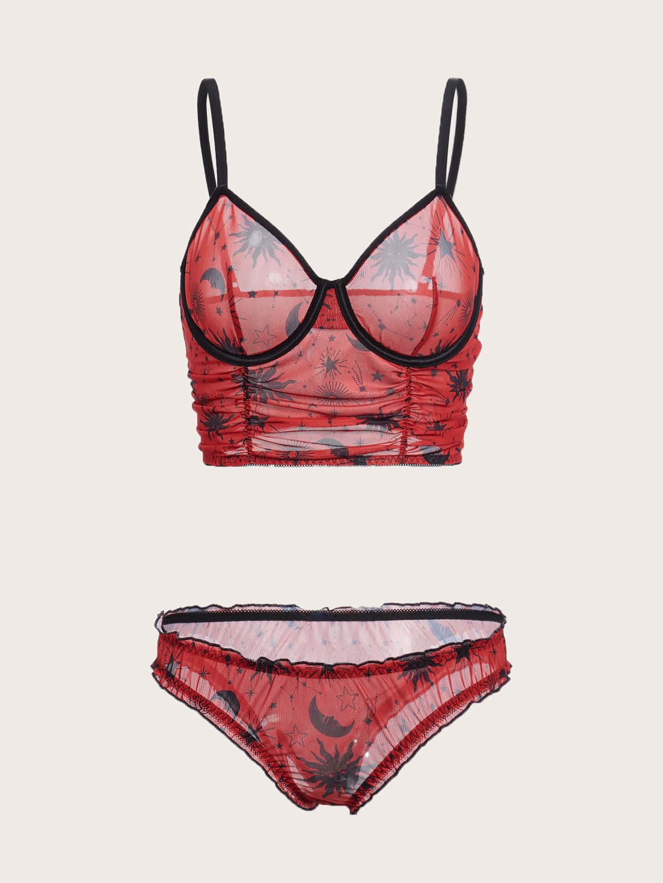 Heymoonly Set de lencería con estampado de sol y luna fruncido