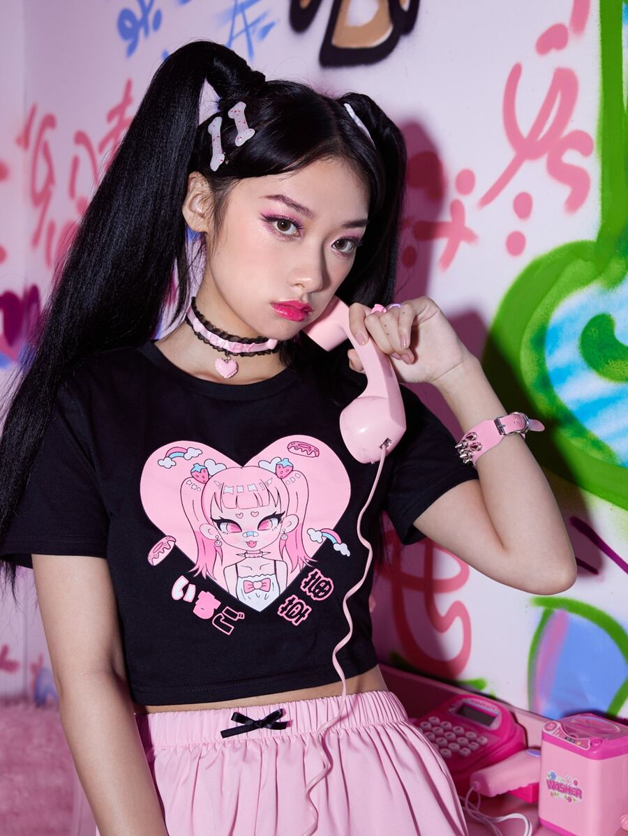 Anime Camiseta corta con estampado de figura de dibujos animados