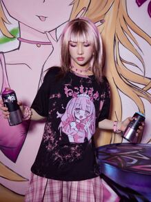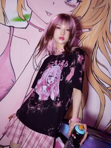 Anime Camiseta con estampado de figura de dibujos animados de tie dye