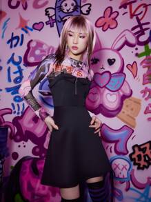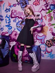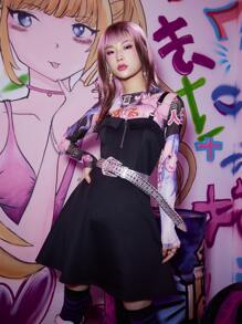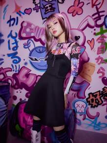 Anime Vestido de tirantes unicolor con cremallera delantera sin cinturón
