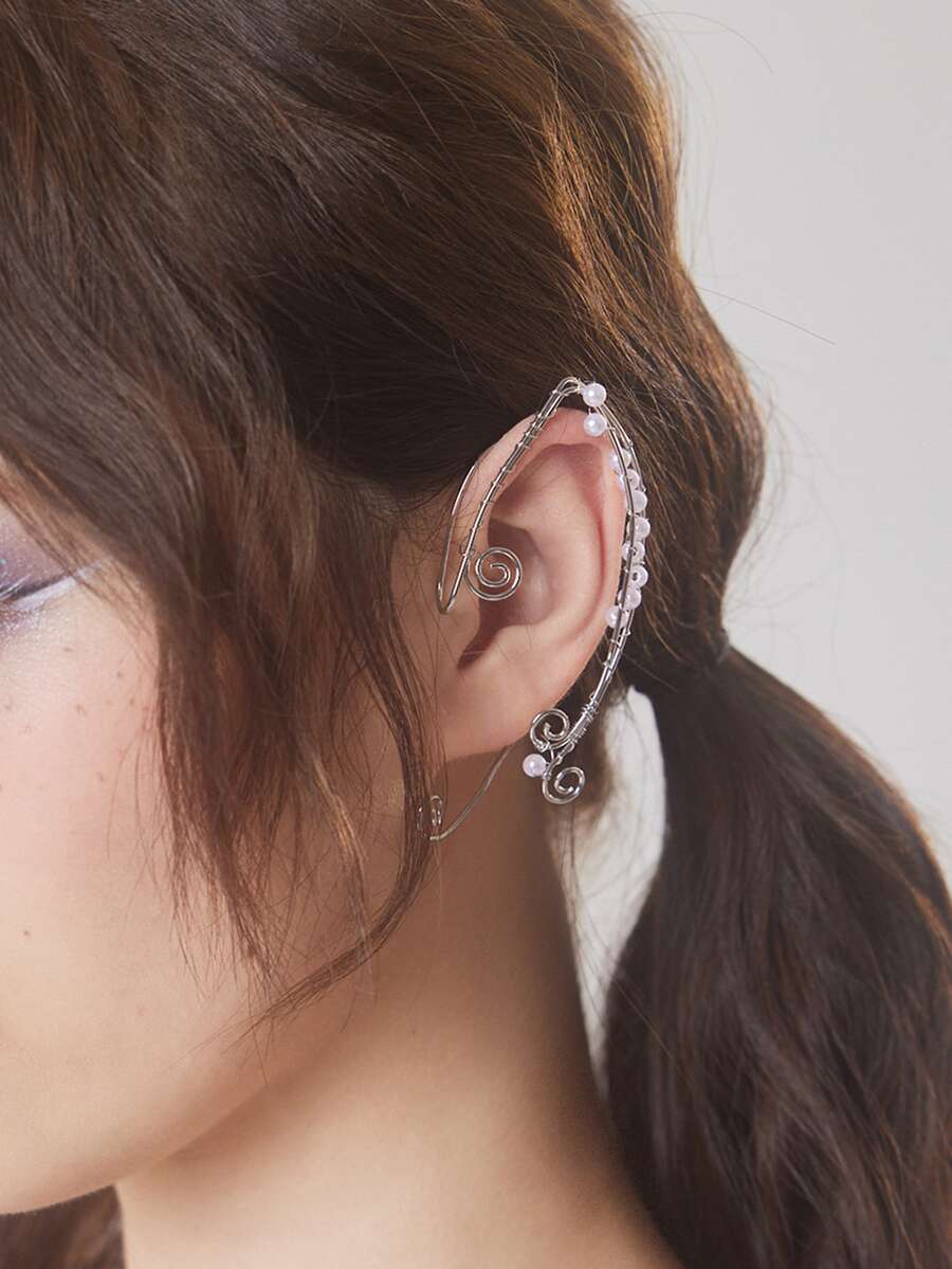 Fairycore 1 pieza Envoltura de oreja con diseño de perla artificial