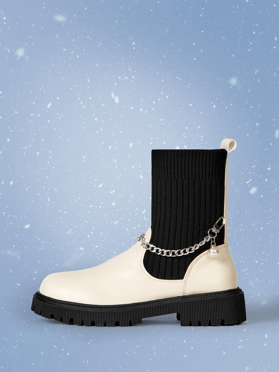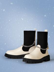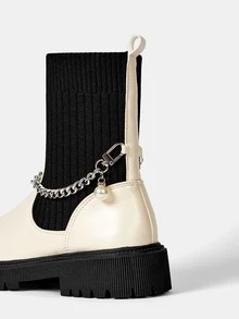 Fairycore Botas calcetín con perla artificial & con diseño de cadena