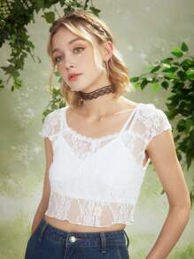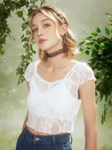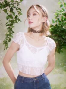 Fairycore Top con encaje transparente sin cami