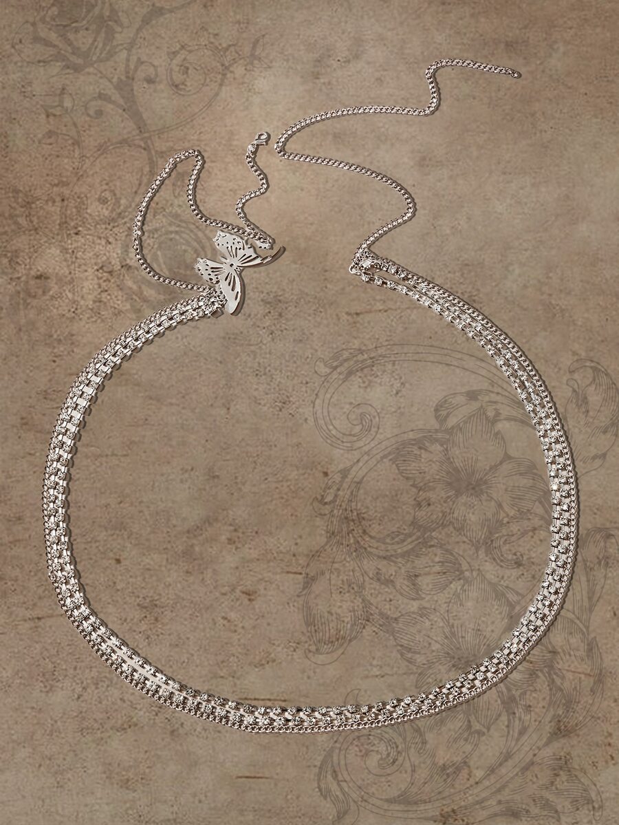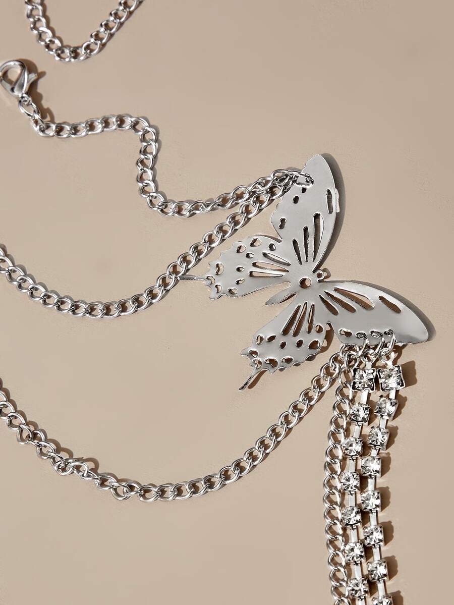 Fairycore Cinturón de cadena con diamante de imitación & con diseño de mariposa