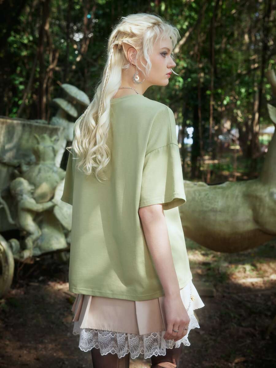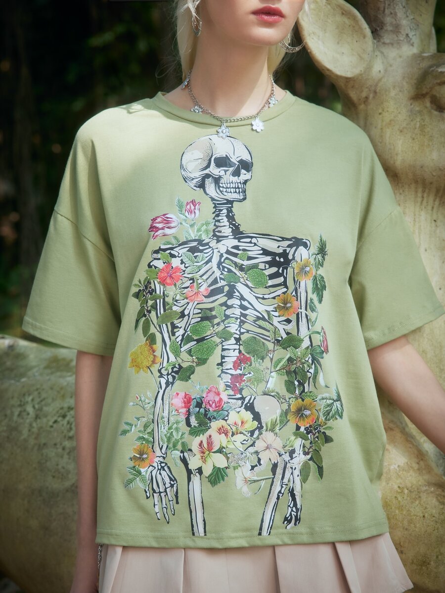 Fairycore Camiseta de hombros caídos esqueleto & con estampado floral