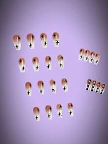 Goth 24 piezas ataúd con estampado de estrella Uña postiza & 1 hoja cinta