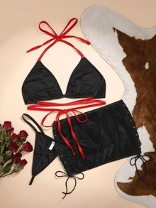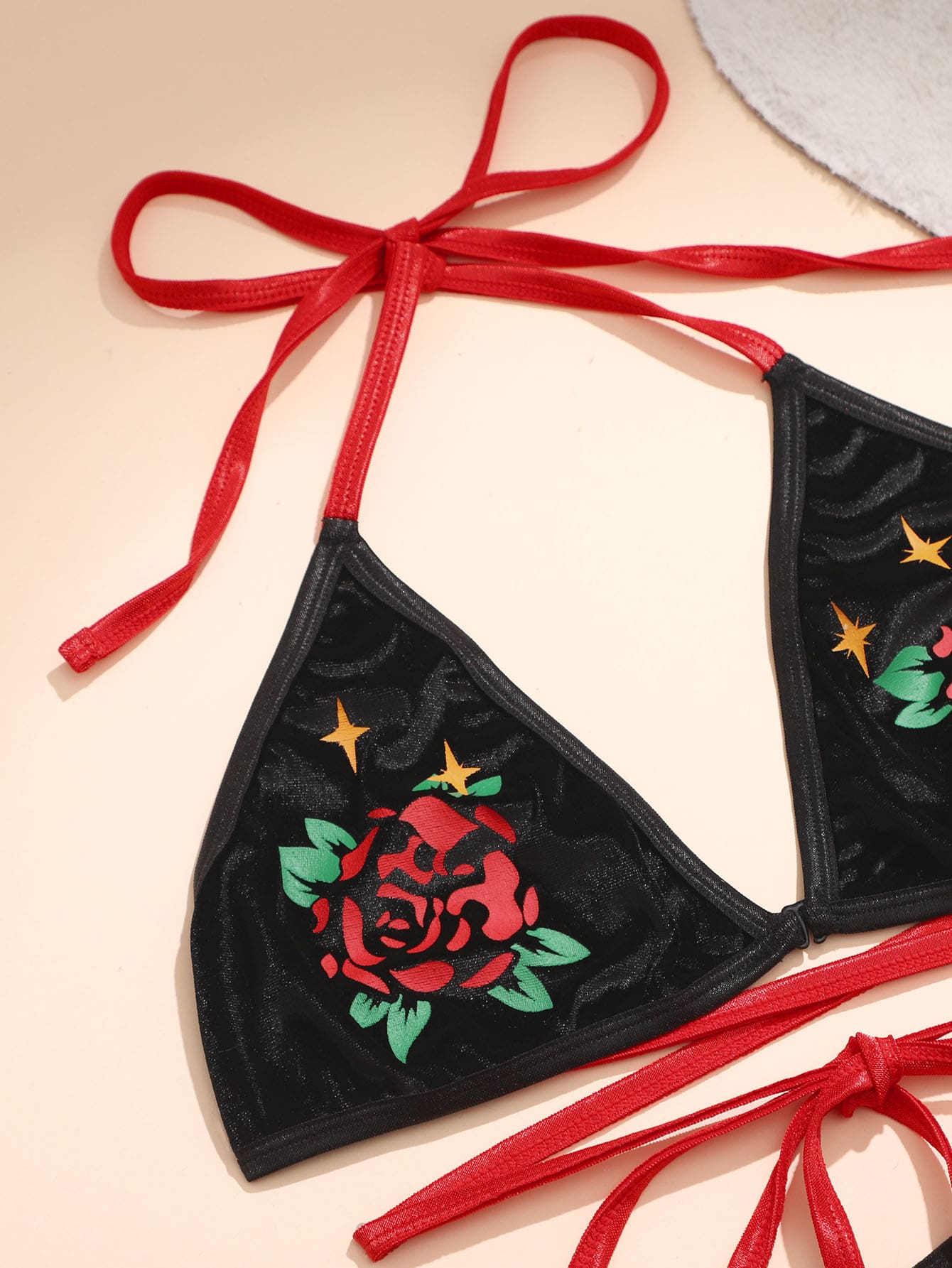 Goth 3 piezas Set de lencería de cráneo & con estampado de flor triángulo